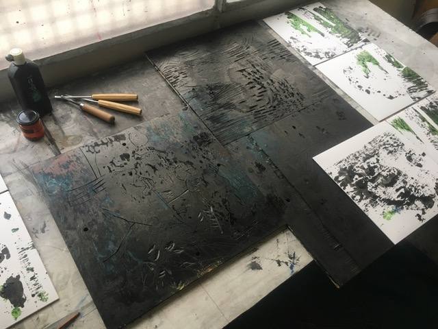 Photos de l'exposition aux 26 Chaises à Paris : Exemplaires uniques des Vinyles GUMMI (Estampes originales par Michael Nick - gravure sur bois)